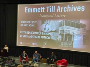 Dr. Houck was joined by Keith Beauchamp and Devery Anderson, two of the nation’s leading experts on Emmett Till’s life and legacy. The lecture welcomed over eighty attendees, both in-person and online. The conversation between Houck, Beauchamp, and Anderson centered around the very different treatment of the case by white and black Americans – more specifically, the lasting legacy of the Emmett Till case on black news media.