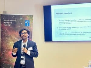 The conference highlighted important data infrastructure, semantic standards, and information needs in accessing astronomical research. He presented his research paper, Controlled Vocabularies and Thesauri in Astronomy: Tracing the Past, Present, and Future at the conference, discussing how astronomy organizes its knowledge and how artificial intelligence is changing this process over time.