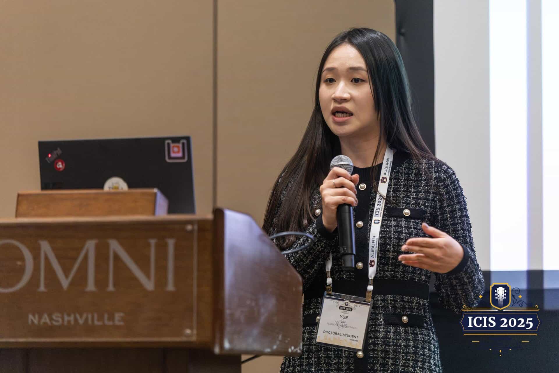 This past December, three School of Information (iSchool) researchers presented at the 2025 International Conference on Information Systems (ICIS) in Nashville, Tennessee. ICIS annually invites information system researchers worldwide to discuss relevant research on innovative technologies, specifically the rapid advancement of artificial intelligence (AI) under the 2025 theme, “Achieving Digital Integration in the Age of AI.” Among the iSchool’s attending researchers was Dr. Shuyuan Metcalfe and doctoral students Ghazal Hussain and Yue “Luna” Liu, who presented their findings on how deception has evolved alongside digital technologies.