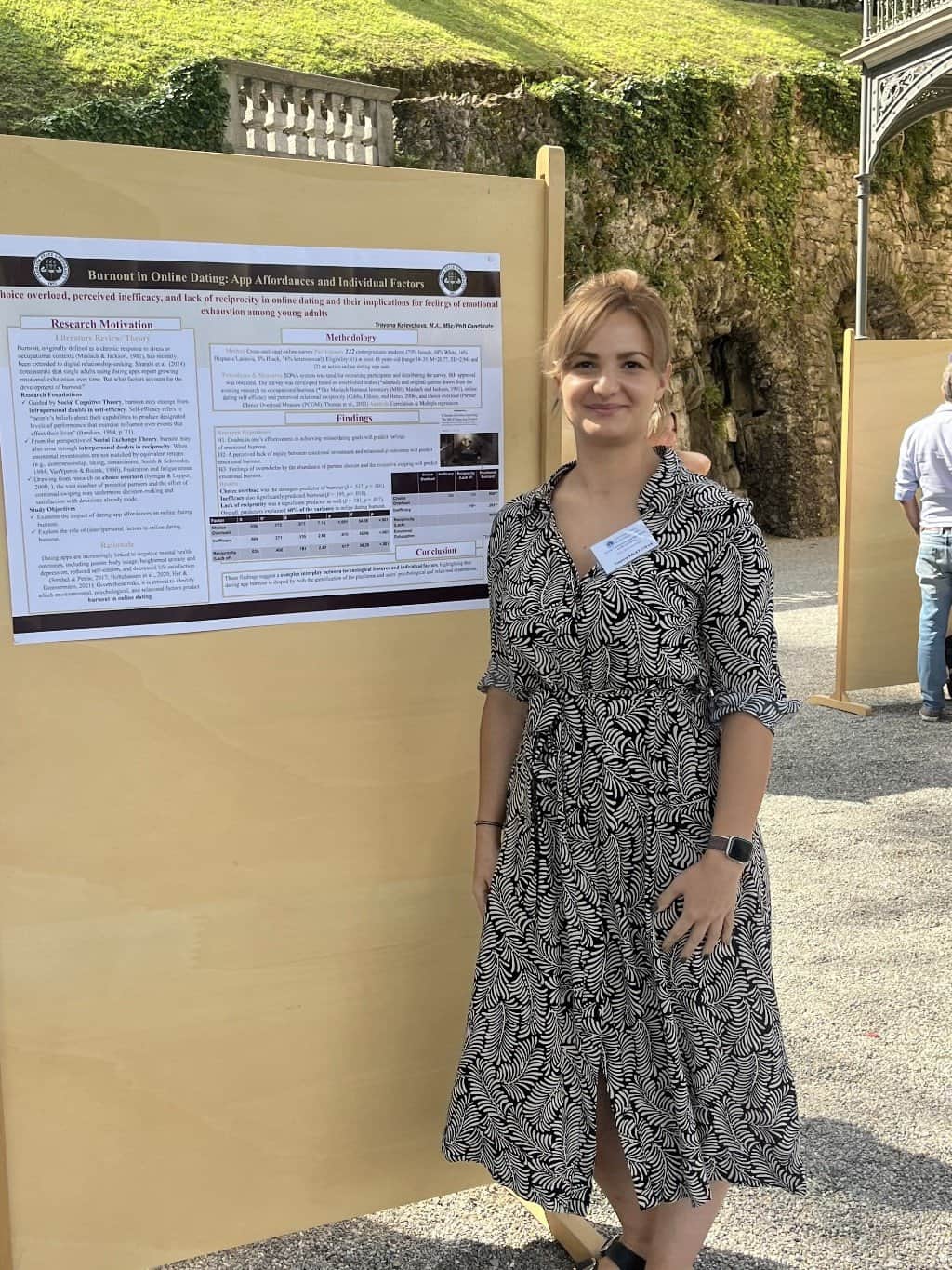Kaleycheva’s presentation, “Burnout in Online Dating: Choice Overload, Perceived Inefficacy, and Lack of Reciprocity and Their Implications for Feelings of Emotional Exhaustion Among Young Adults,” investigated how the gamified design of dating apps affects users’ psychological and relational states, producing dating app burnout.